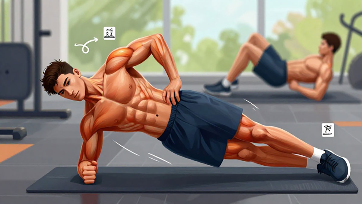 Side plank juga menjadi latihan andalan untuk memperkuat oblique. Posisi tubuh menyamping dengan satu siku sebagai tumpuan akan memaksa otot samping perut bekerja menjaga keseimbangan. Tahan posisi selama 30 hingga 60 detik untuk hasil optimal.