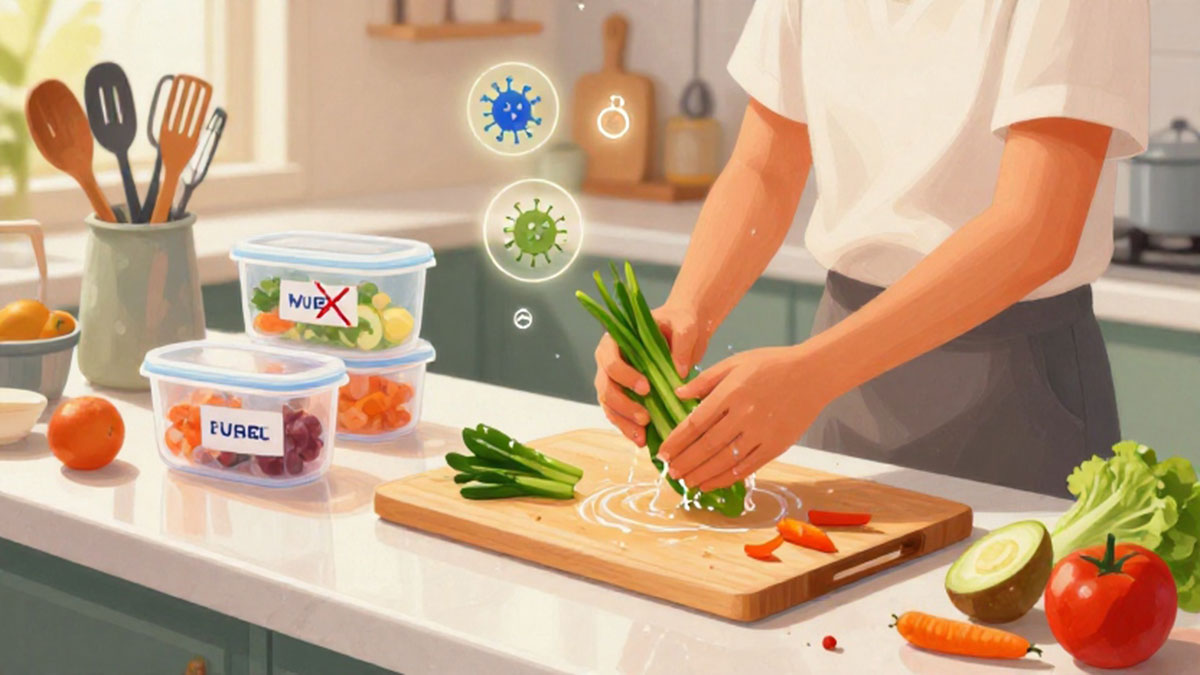Kontaminasi silang bisa terjadi dari peralatan, tangan, atau bahkan air. Selalu gunakan lap bersih untuk mengelap tumpahan dan ganti spons atau kain lap secara rutin. Jangan mencampur sayuran segar dengan daging mentah saat mencuci atau memotong, dan simpan bahan makanan di rak terpisah di lemari es untuk menghindari perpindahan bakteri.